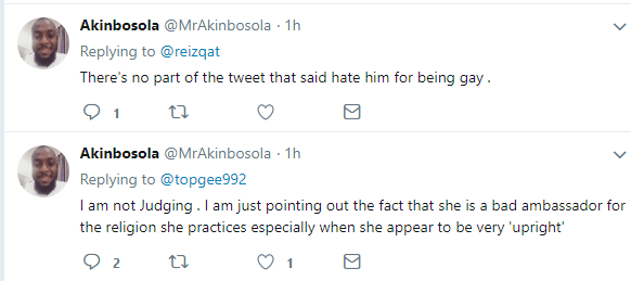 A male Twitter user, @Akinbosola has apologized after coming under fire for slamming a muslim woman for sharing a photo she took with cross dresser, Bobrisky.