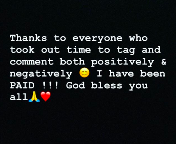 Yvonne has now given an update that she has been paid.