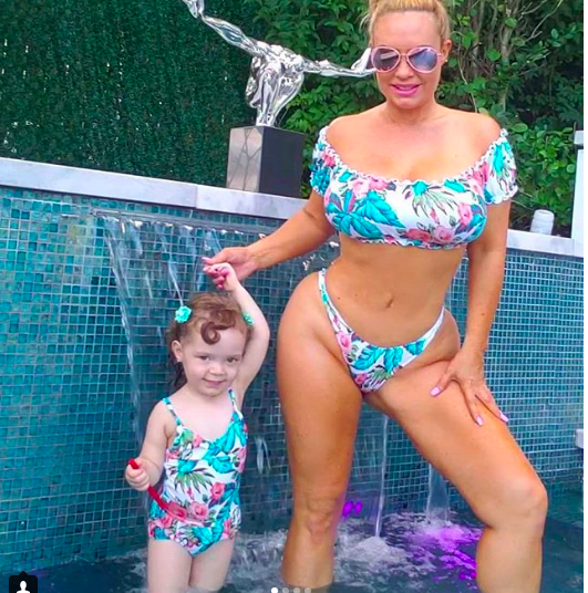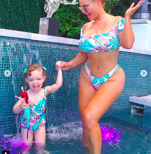 She and daughter Chanel decided on twinning as usual rocking matching bikinis as they enjoyed some pool time.