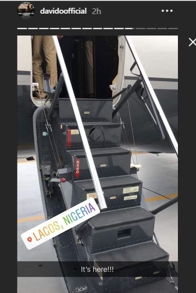 Davido, who made news three months ago about acquiring a private jet has just announced that the jet jas indeed touched down in Nigeria,