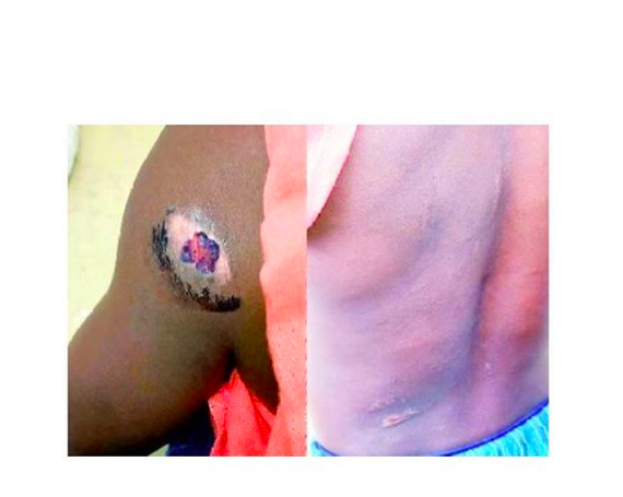 In one of the beating sessions, the supposed aunty punched her in the right eye which has turned black. She burnt the poor girl’s shoulder with a hot kettle and hurt her head so bad she had eight stitches.