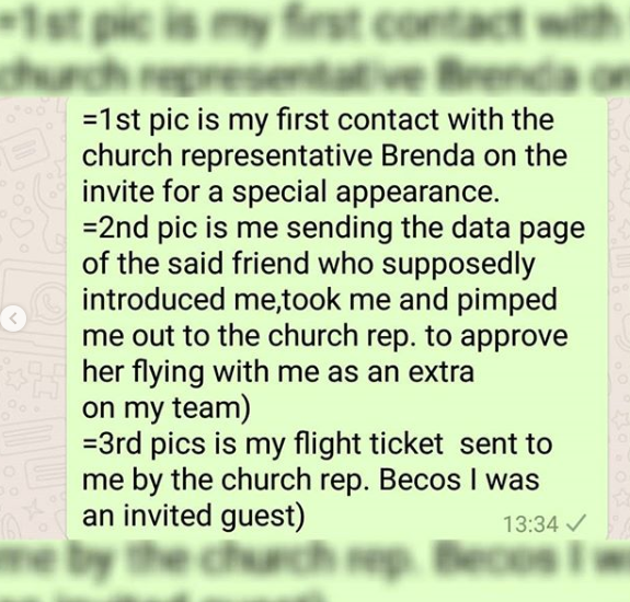 I was never invited to S.A by any friend, nor was I introduced to the church by a friend in NIGERIA or outside the country for my visitation… I really would have let this slide but I cannot be silent and have my good name tarnished and be linked with such horrible and shameful act