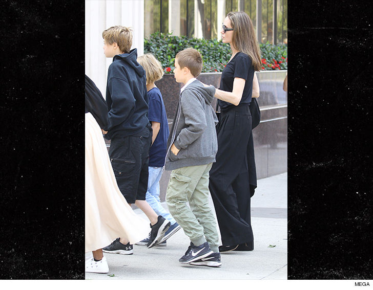 Jolie and her 6 kids Zahara, Shiloh, Vivienne, and Knox were seen in L.A. Saturday heading to see a movie together … flanked by a couple bodyguards.