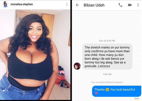 A plus size model by the name Monalisa Stephen, did a great job putting a trill in her place after the latter slammed her for her size.