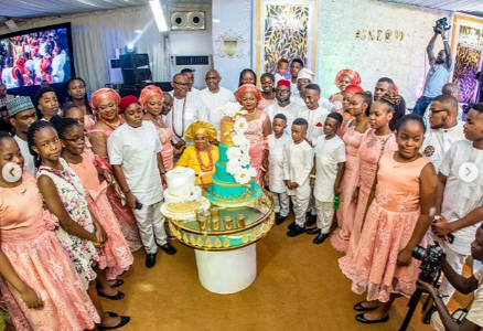He threw a lavish party which saw the likes of Ooni of Ife, Oba Adeyeye Ogunwusi, Otunba Adekunle Ojora & Erelu Ojuolape Ojora, Oba Rilwan Akiolu, Chukwumalieze 1 of Onicha-Ugbo , Aliko Dangote, Femi Otedola, Tayo Ayeni, Segun Awolowo, Mr. Jim Ovia in attendance.