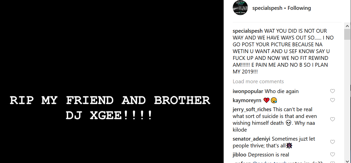 Earlier today, it was reported that popular DJ, DJ Xgee allegedly committed suicide not long after he dropped a suicide note on Instagram on January 2nd 2019.