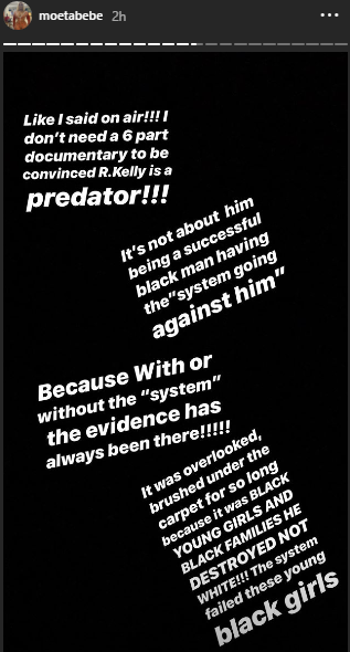The curvy media personality has taken to social media to air her thoughts on the trending #survivingrkelly docuseries adding that she will no longer be listening to the singer’s songs.