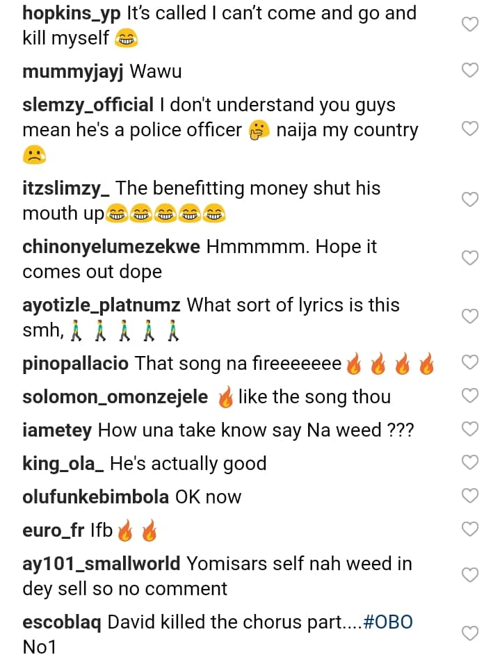 Nigerians are raging online after a video of SARS officer Yomi Sars who is now a singer, with Davido showed the latter lighting and smoking weed in the studio. Nigerians have taken to social media to drag Yomi for this act. Read some of the comments below;