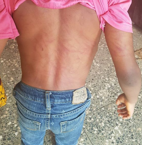 This is what I found in my mum’s school today cus he broke his mum’s food flask. We kept asking who did this to you he said he fell down it took almost one hour before he said it’s his mum. This here is inhumane for a child of 7 years Jesus this not fair . We are definitely waiting for her with police