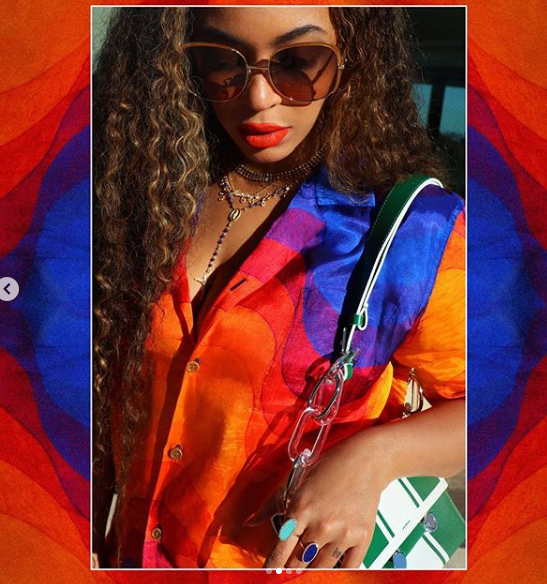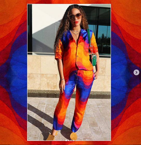 The mom of three took to her IG page to share stunning images of herself donning a colorful two-piece outfit.