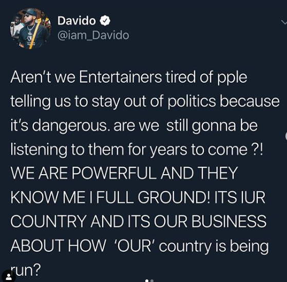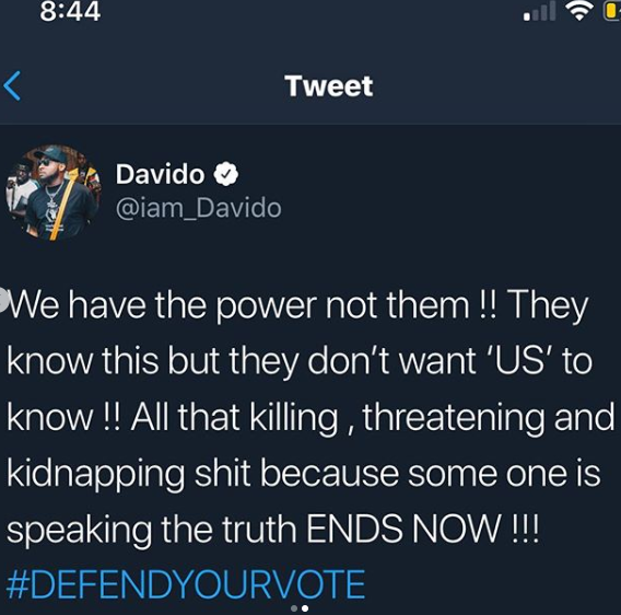 Multi-award winning singer Davido has shared his thoughts on the forthcoming presidential elections.