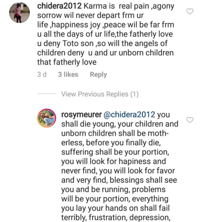 Taking to Rosy’s comment section, a social media user with the handle @chidera2012, wrote;