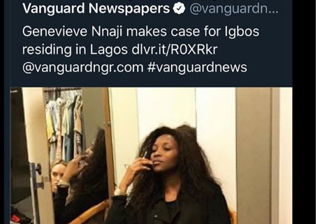 Nollywood actress Genevieve Nnaji has called out Vanguard ewspaper for peddling a fake news about her.