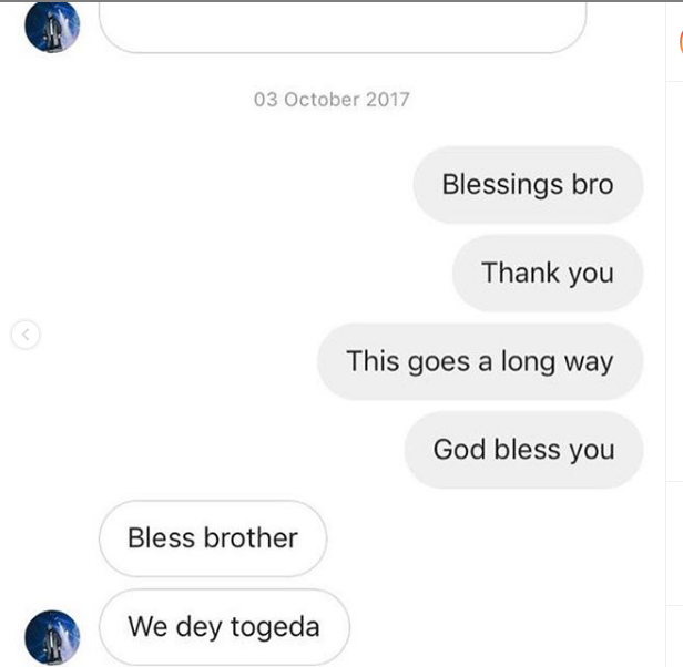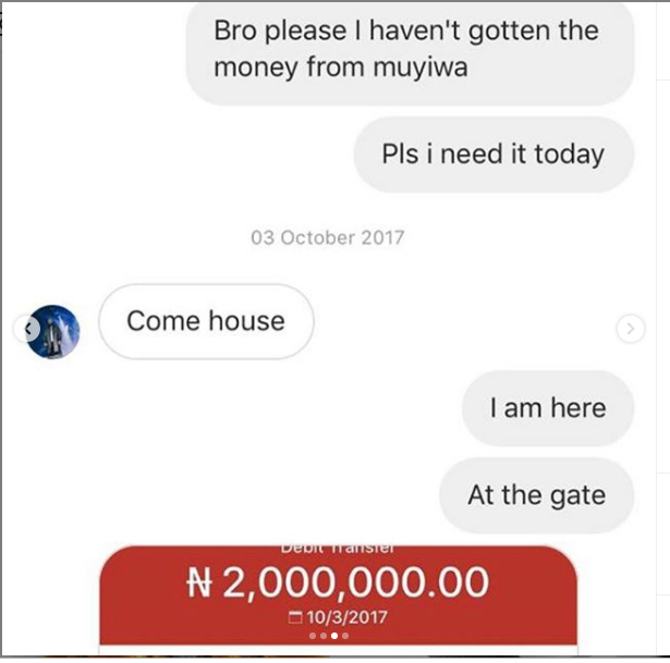 Sharing screenshots of their conversation, Richard revealed how David paid up his N2Million debt.