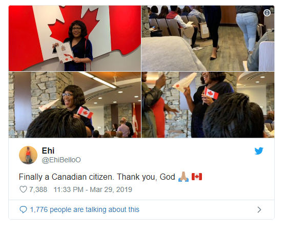 ”Finally a Canadian citizen. Thank you, God